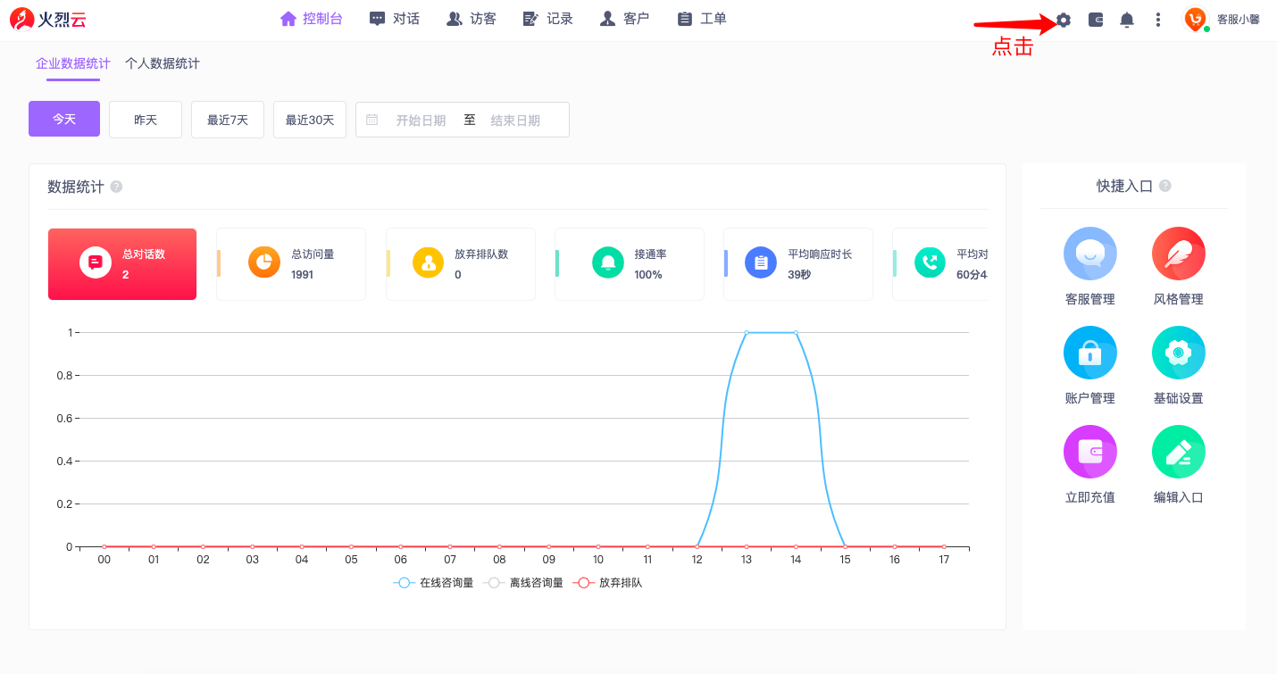 2、登陆“火烈云”客户端,点击屏幕上方“设置”