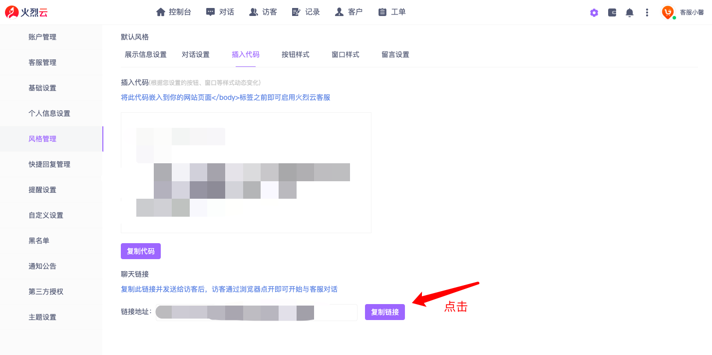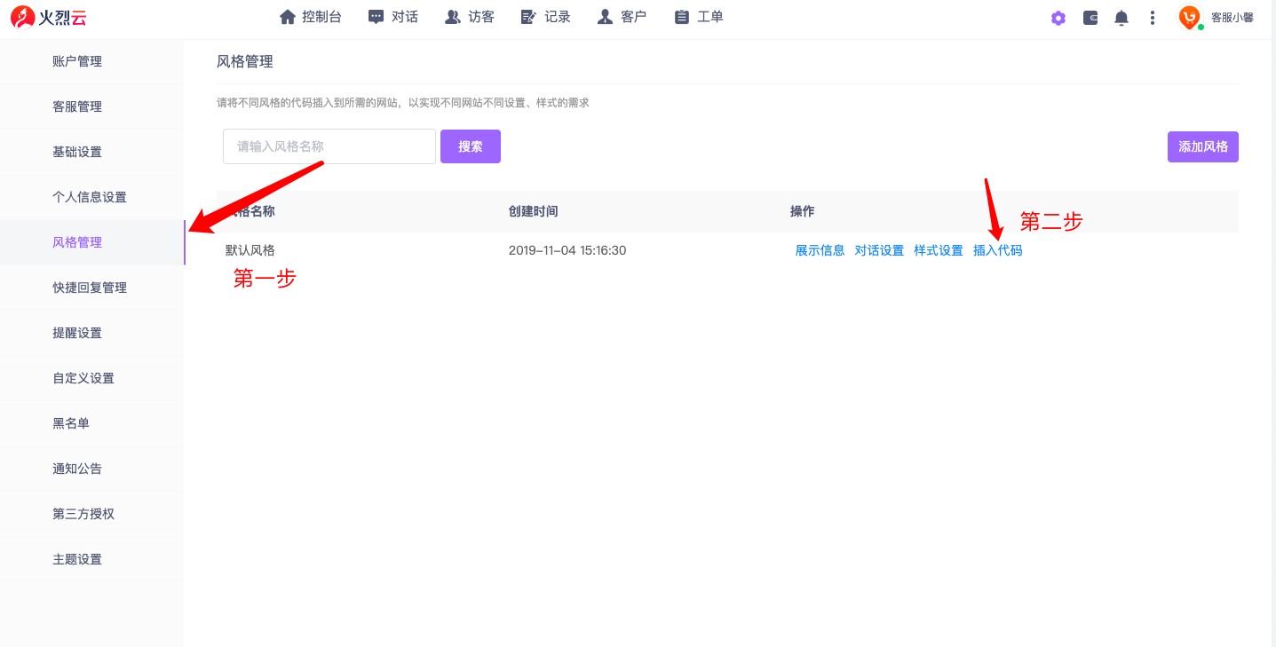 3、点击屏幕上方的“风格管理”,点击“插入代码”