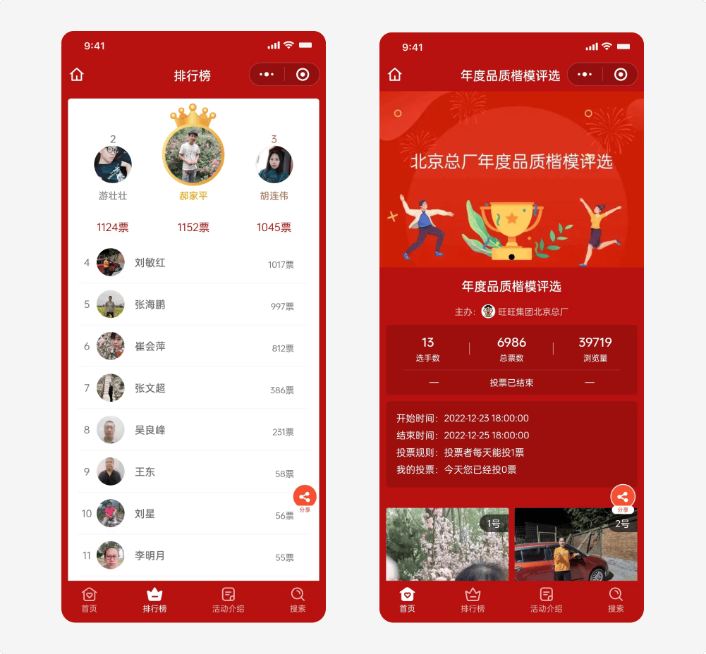 案例一:旺旺集团北京总厂举办了年度品质楷模评选,活动举办期间,浏览量和参与量都达4.2万。