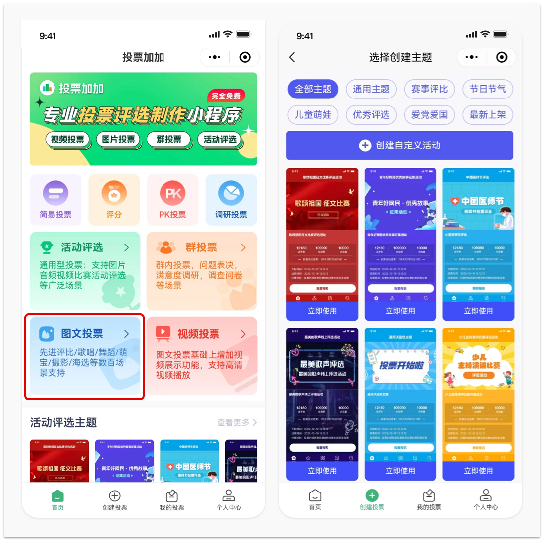 投票加加小程序中包含上百套主题模板可以适合各种主题场景。