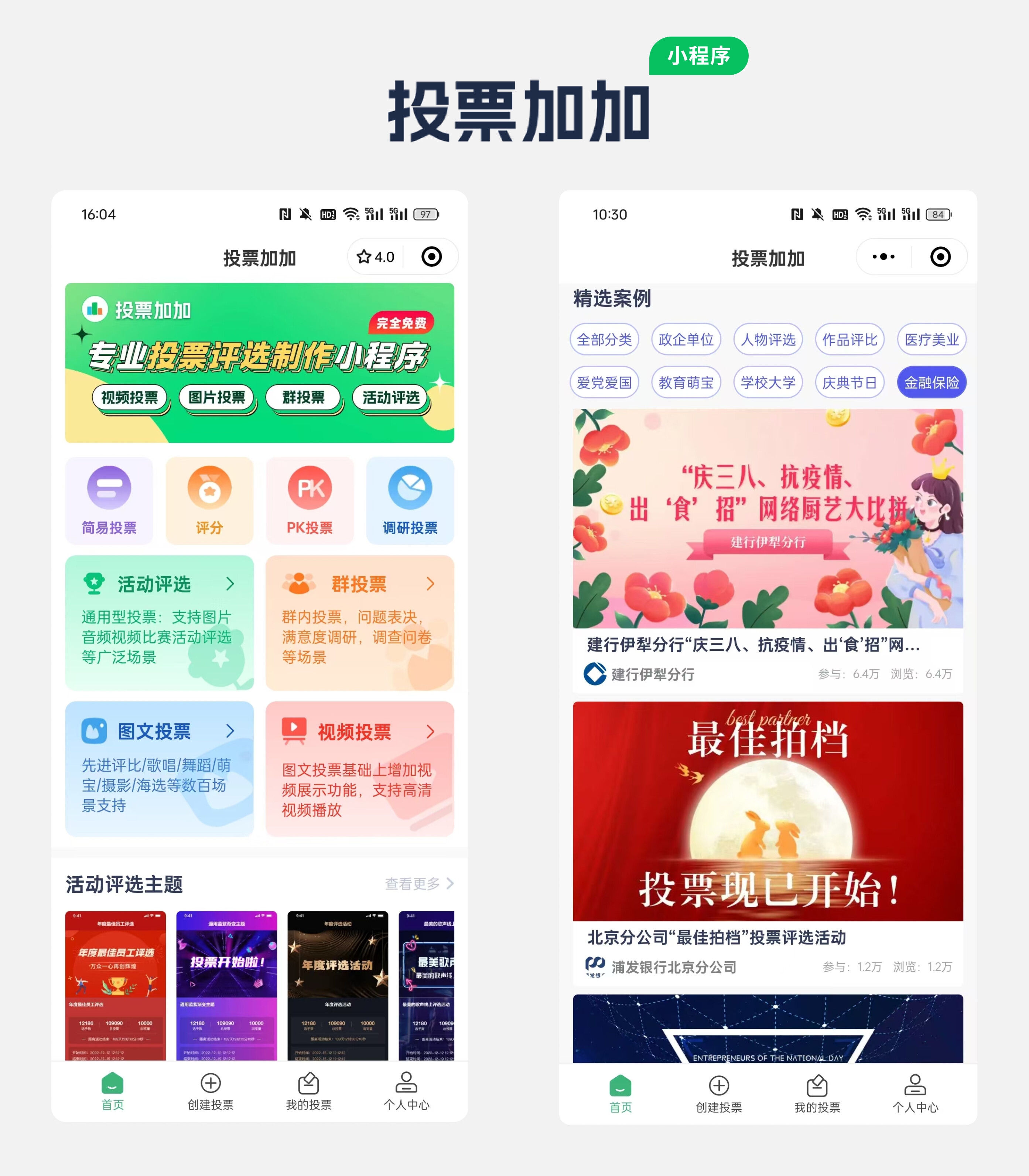 微信搜索小程序投票加加,投票加加有海量模版可以使用。