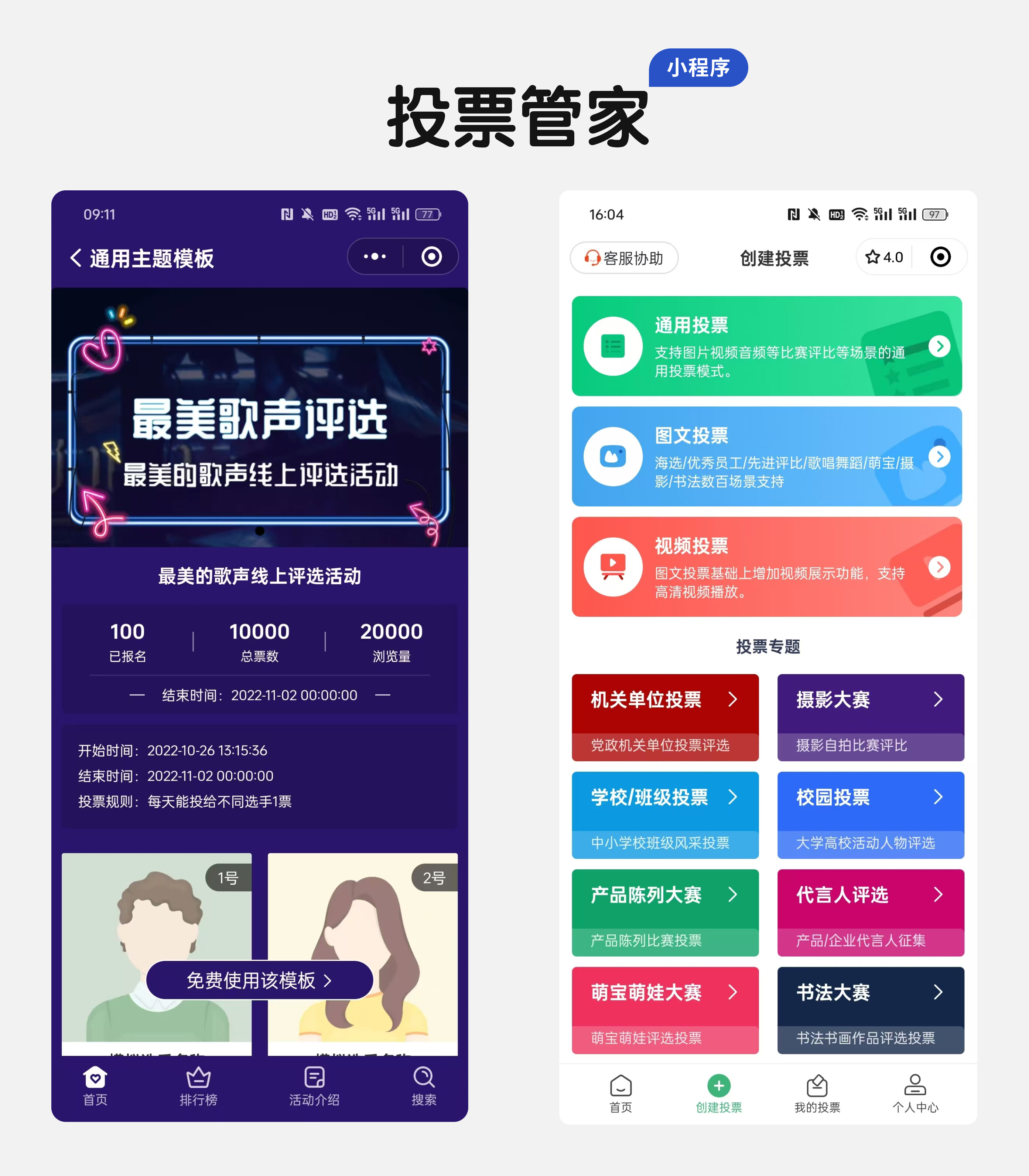 (2)投票管家网站提供了丰富多样的模板和个性化设置选项。挑选一款最合适的模板。