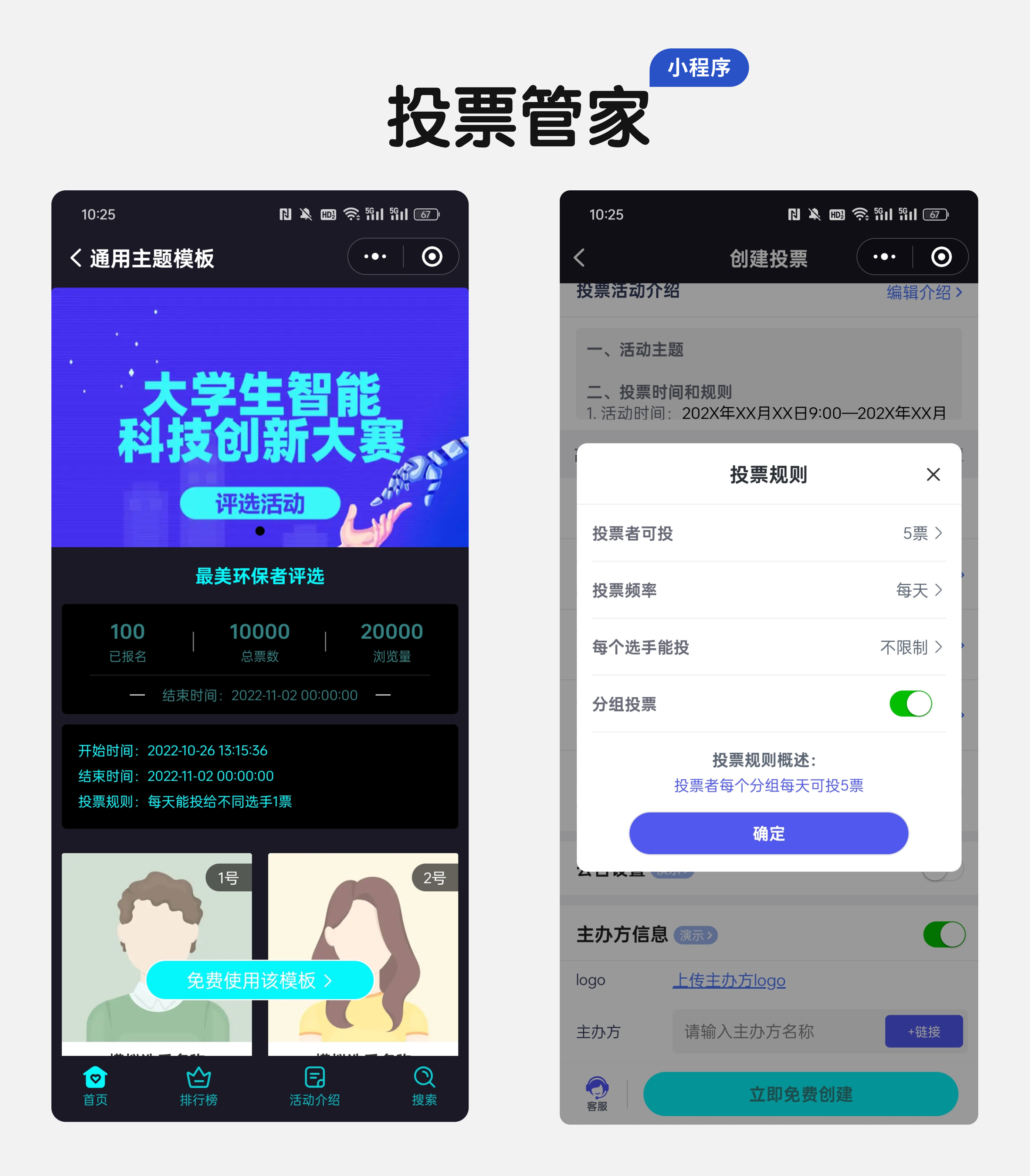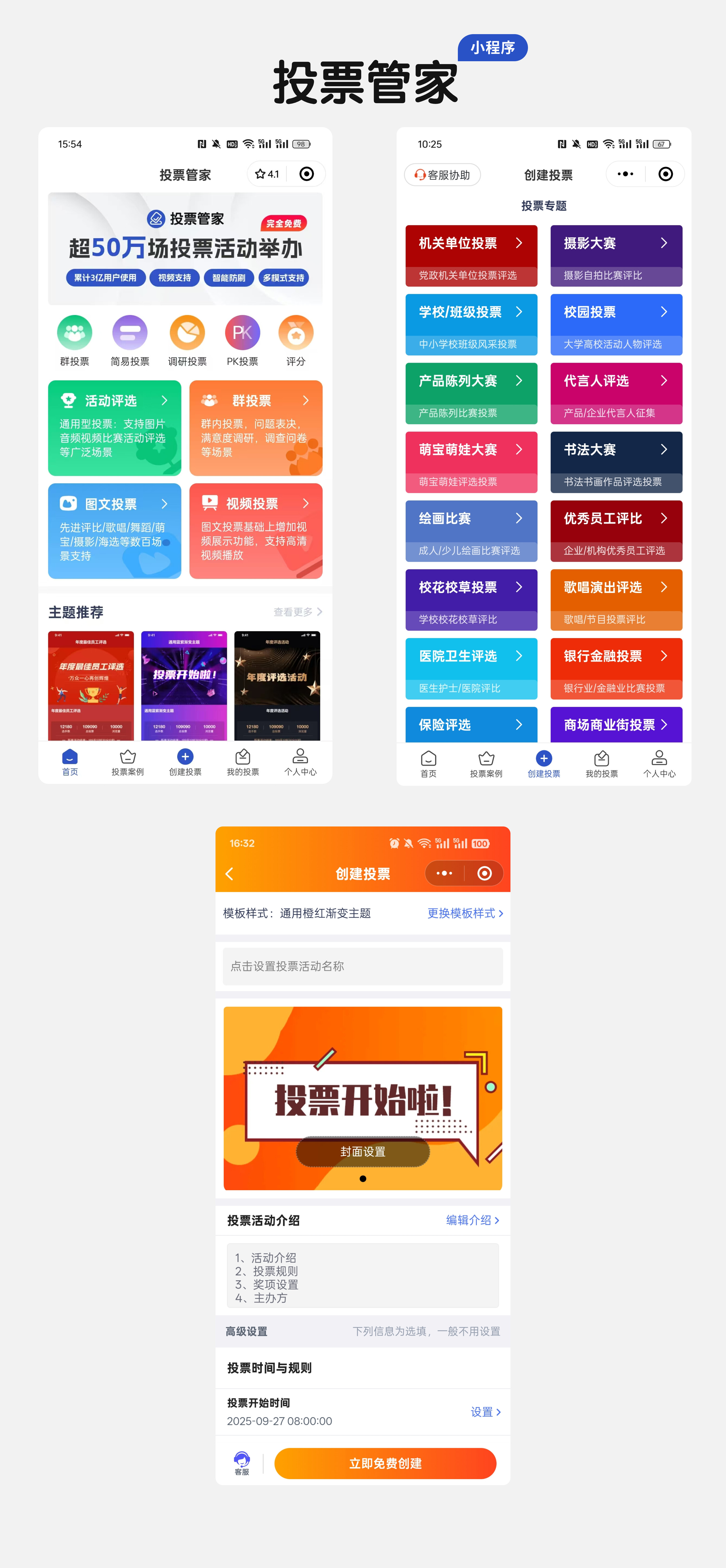 传封面图,填简单规则(如投票时间);