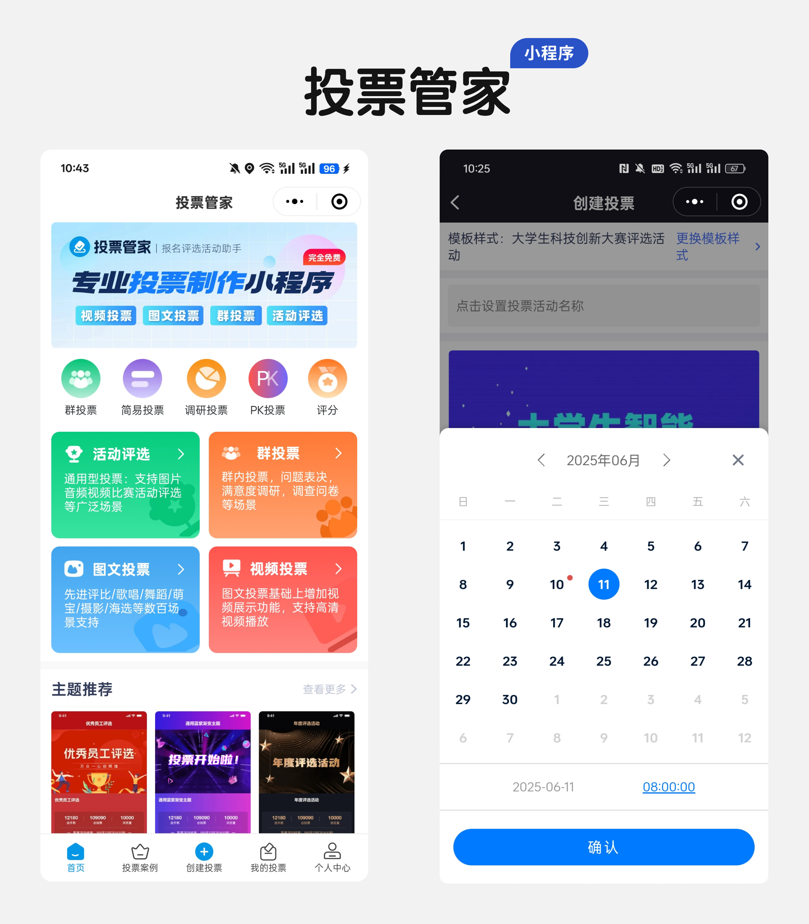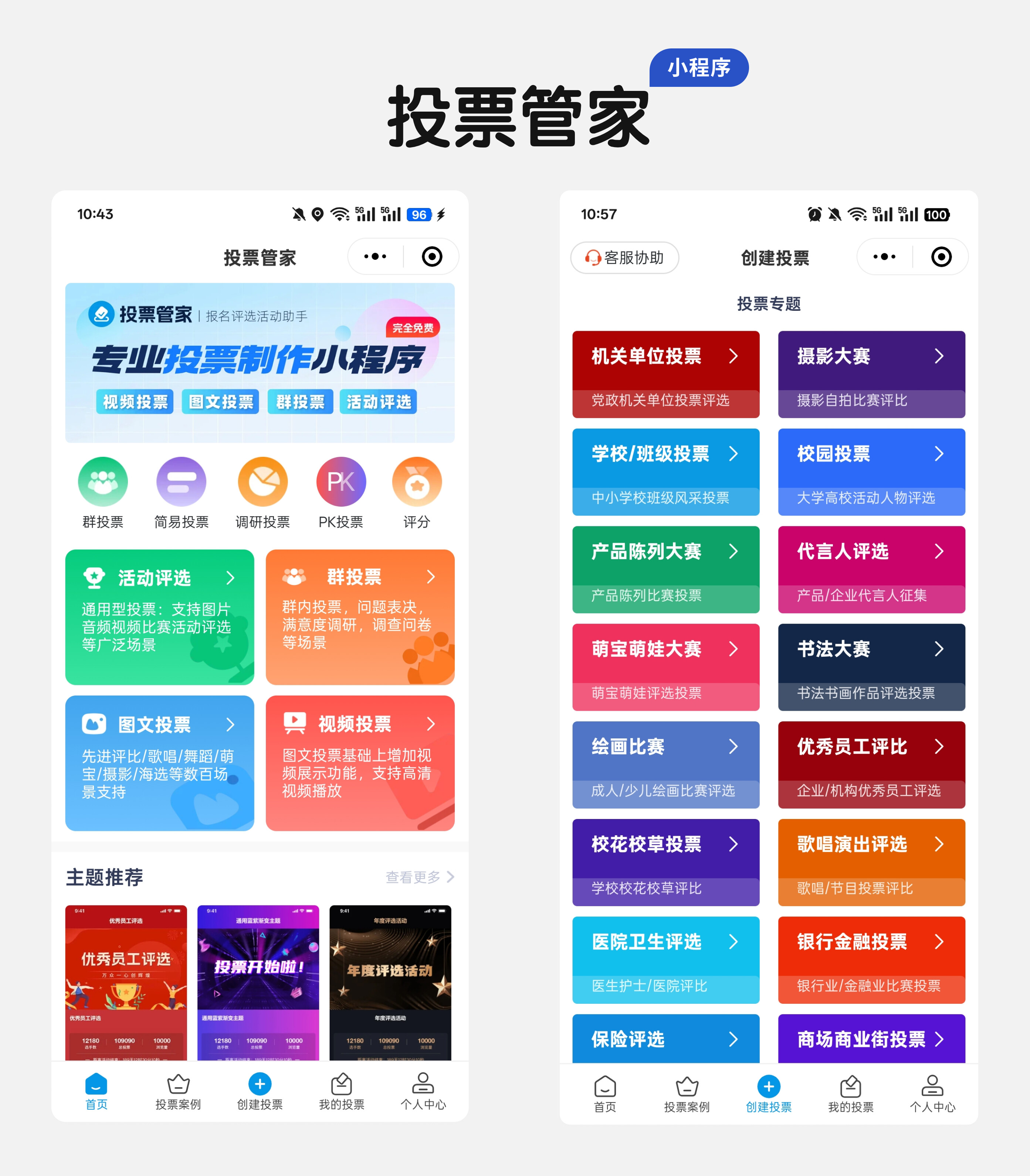 进入主界面后,点击 “创建投票” 或 “活动评选” 按钮,两种方式任选: