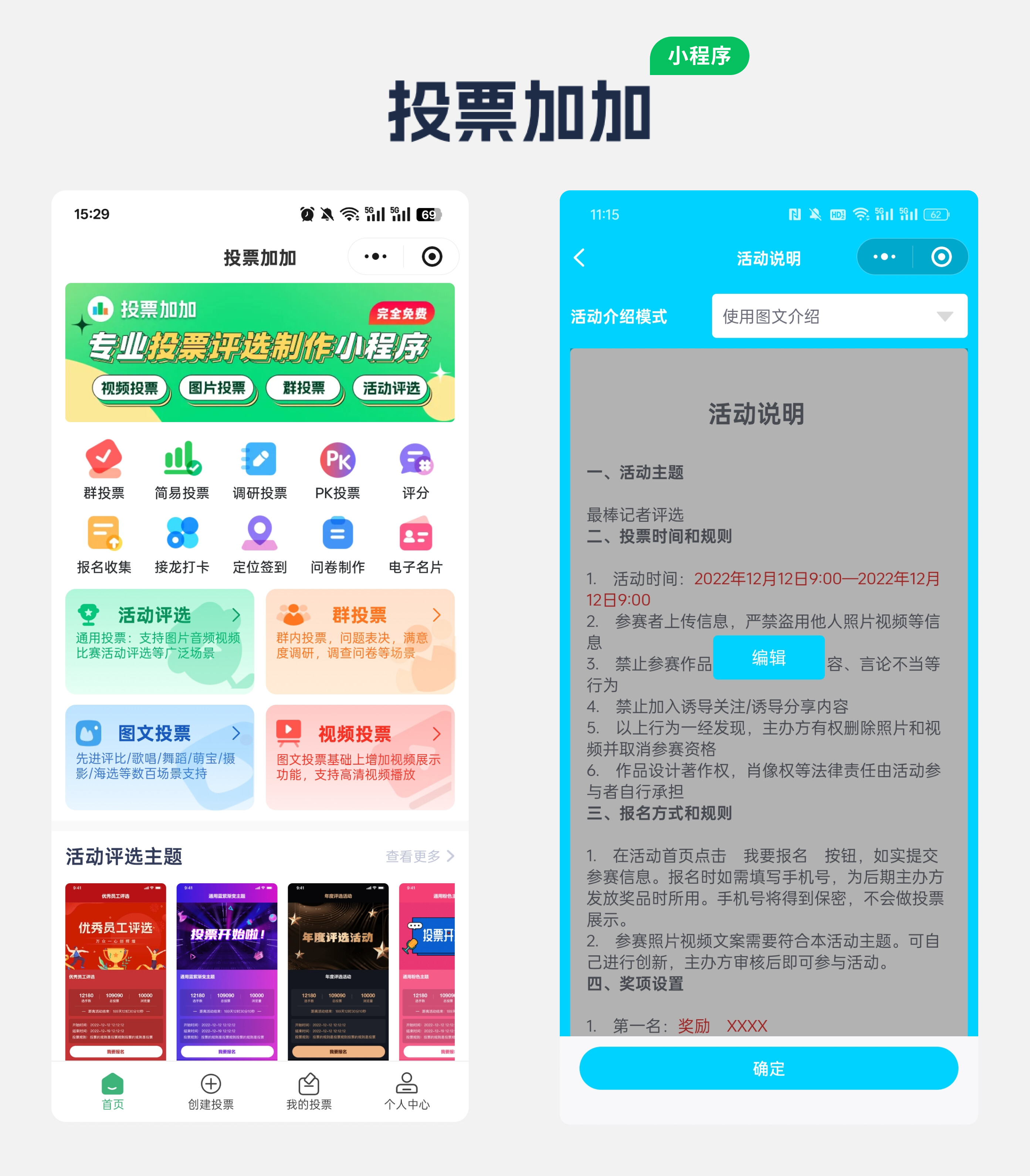 支持图文、视频投票,页面颜值高,分享出去很有面子
