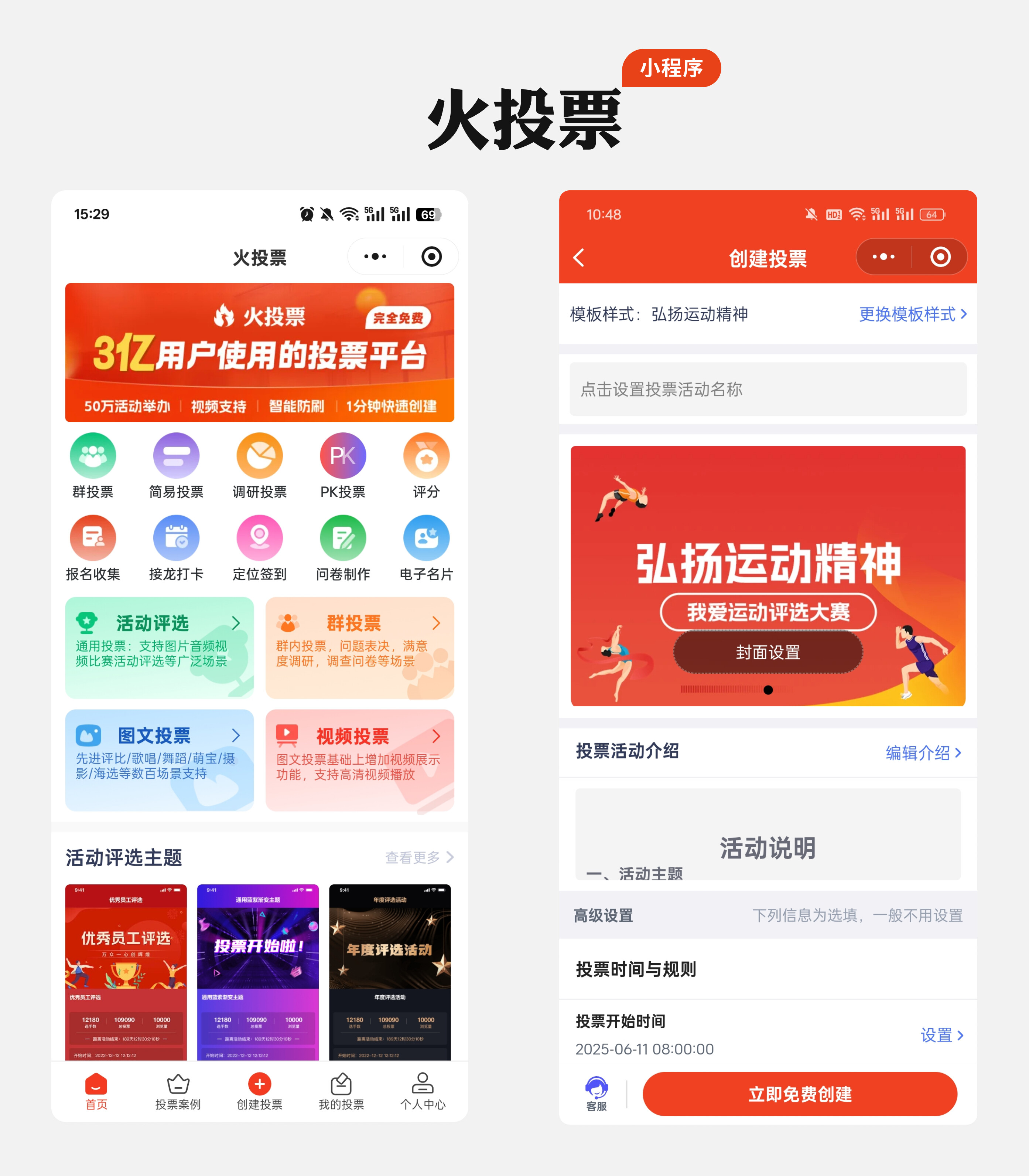 由此可见,在线投票平台真的非常重要,今天就给大家好好聊聊在线投票平台的挑选技巧,同时安利一款亲测好用、口碑在线的微信小程序——火投票,不管是个人日常使用,还是团队、企业、校园组织活动,都能轻松拿捏,省心又放心。